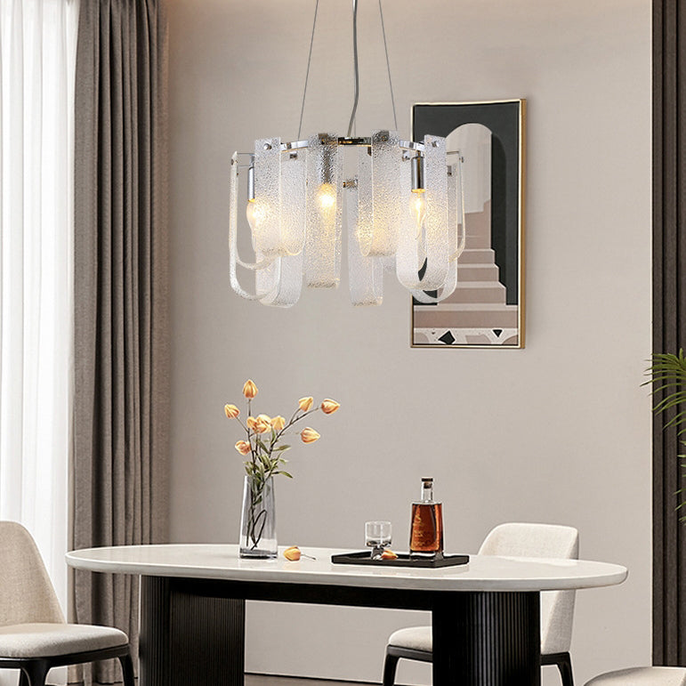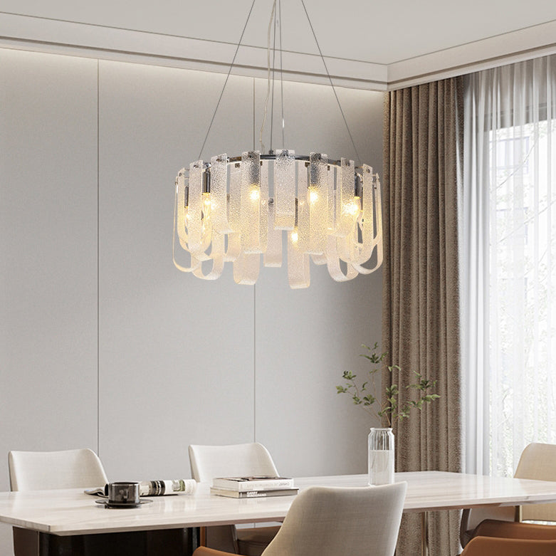 Modern Luxury Geometric Glass Strips Round Iron 6/8/10 - Light Chandelier For Living Room