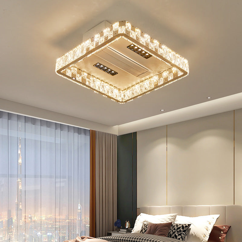 Modern Luxury Stainless Steel Acrylic Crystal Round Square Rectangular LED Flush Mount Ceiling Bladeless Fan Light For Bedroom