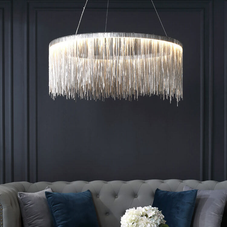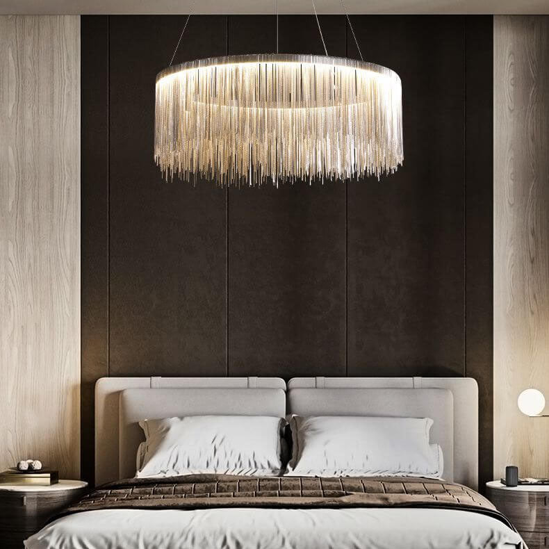 Modern Circular Metal Tassel 1-Light LED Chandeliers