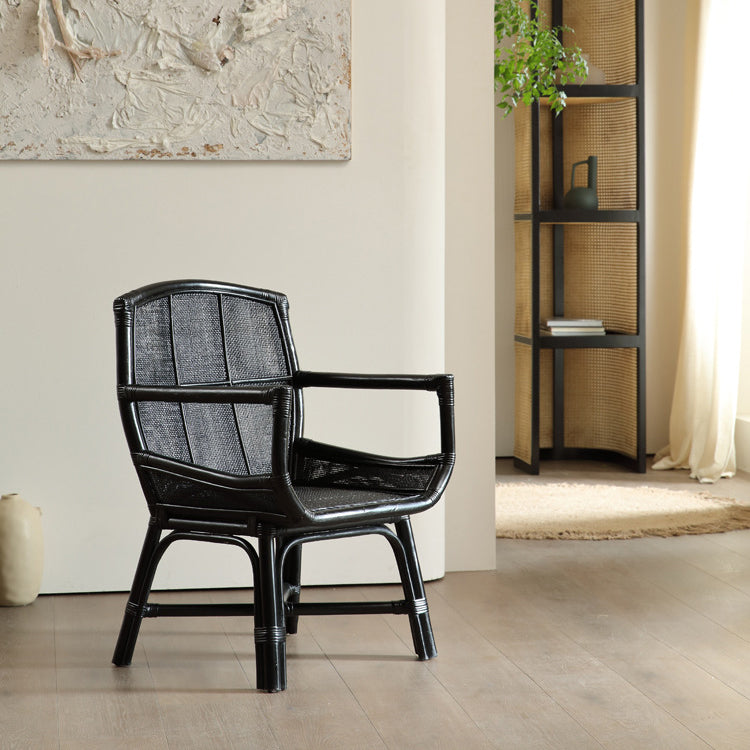 Contemporary Boho Rectangular Rattan Accent Chair Backrest Armrest For Living Room
