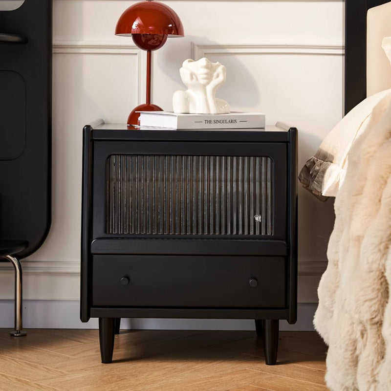 Traditional French Wood Striped Glass Rectangular Nightstand 1-Drawer Storage For Bedside