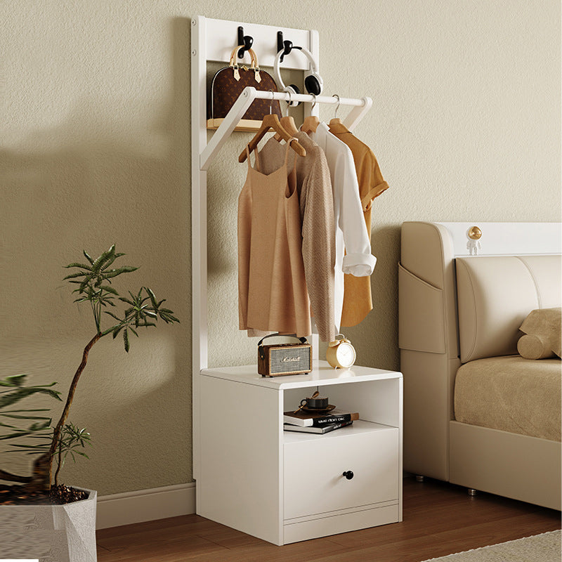 Modern Minimalist Solid Wood Carbon Steel Square Nightstand 1-Drawer Clothes Rack For Bedside