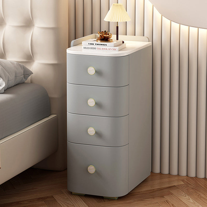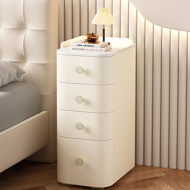 Modern Minimalist Slab Wood Microfiber Leather Square Nightstand 4-Drawer For Bedside