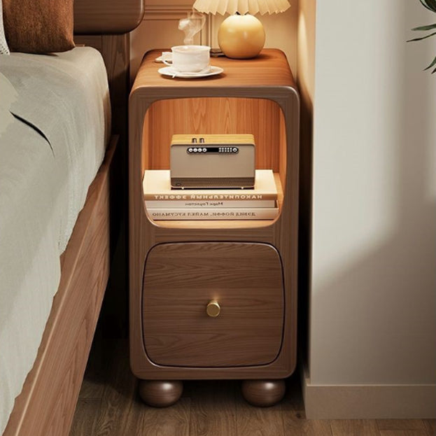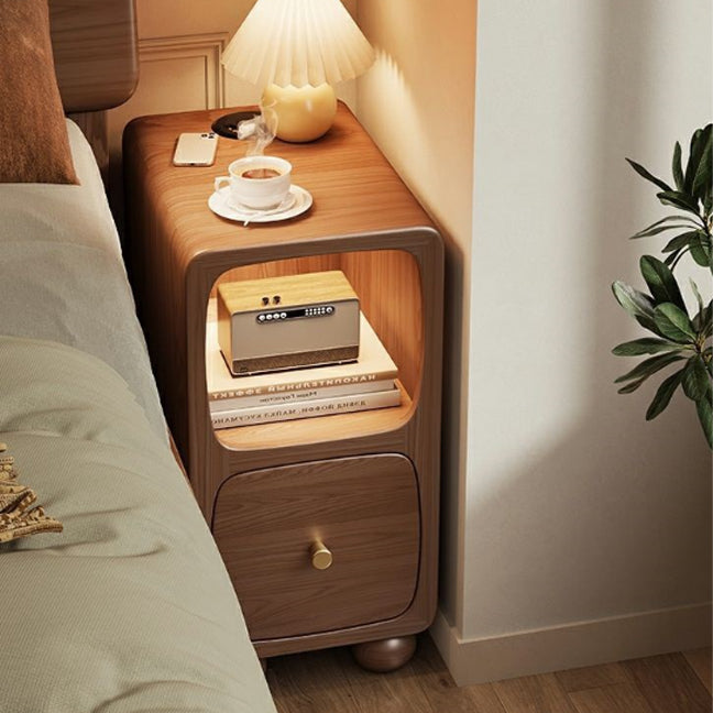 Contemporary Simplicity Solid Wood Slim Gap Bedside Cabinet Nightstand 1-Drawer & Cabinet For Bedroom