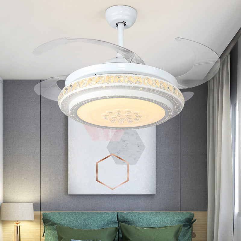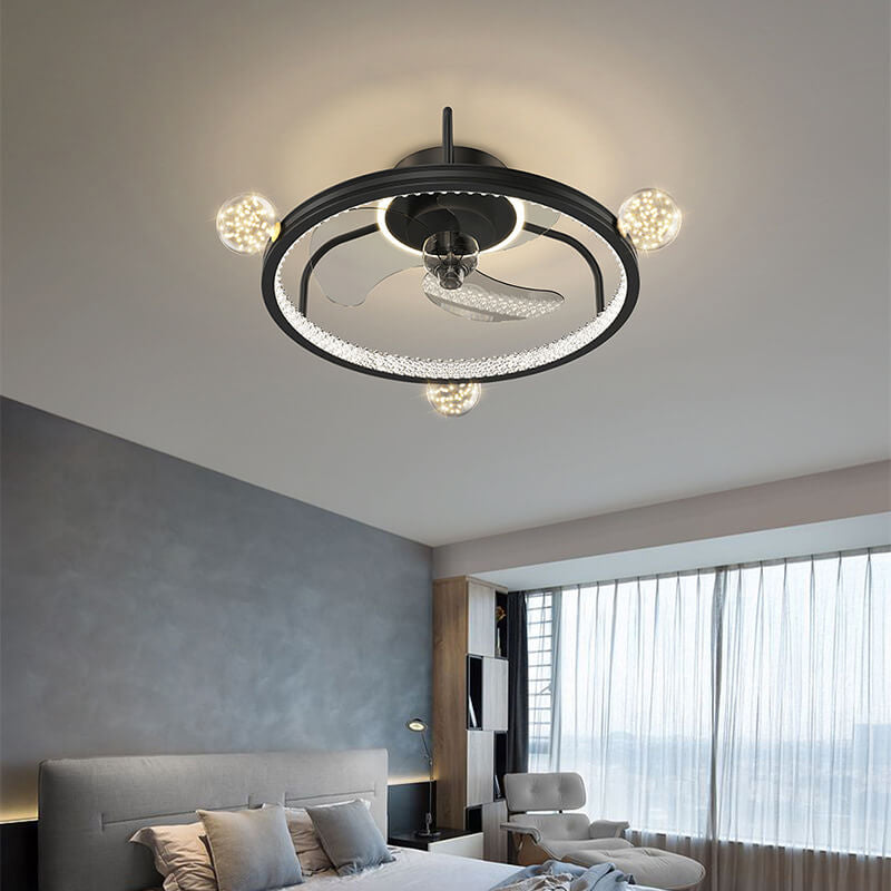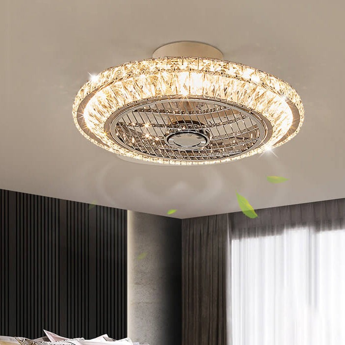 Nordic Simple Crystal Round Frame Design LED Flush Mount Ceiling Fan Light