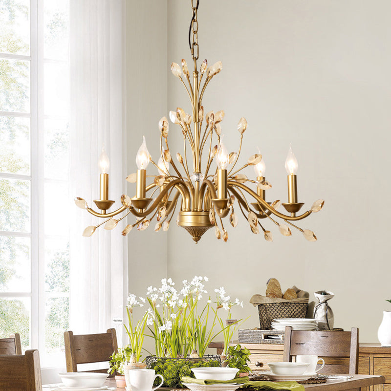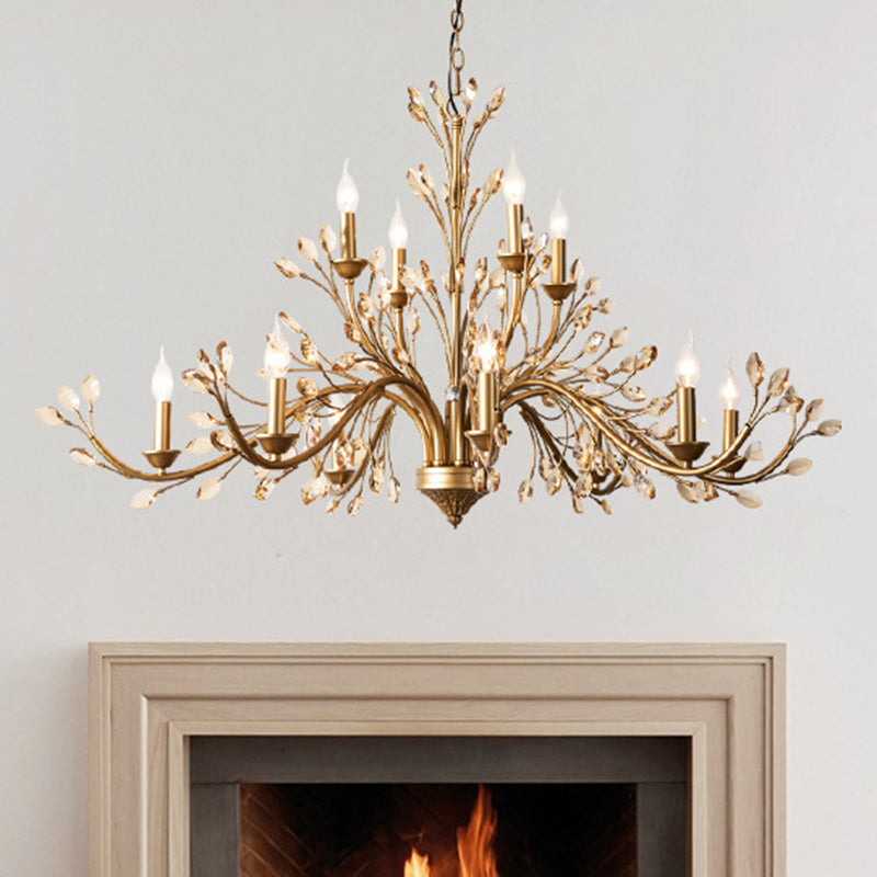Traditional French Iron & Crystal Branch-Shape 6/9/12-Light Chandelier For Living Room & Bedroom