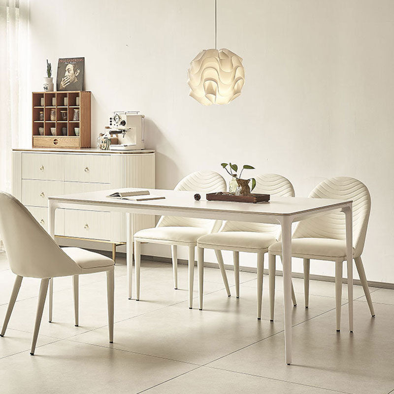 Modern Minimalist Rectangular Rock Slab Aluminum Alloy Dining Table & Chair Set For 4 Seats