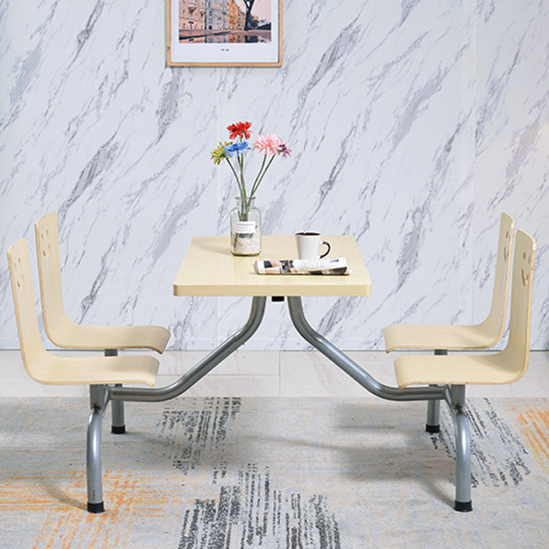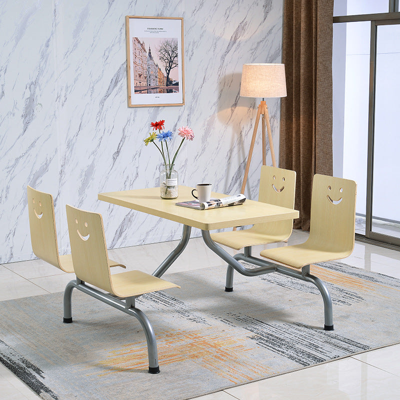 Modern Simplicity Wood Hardware Rectangular Smile One-piece Dining Table & Chair Set For 4 Seats
