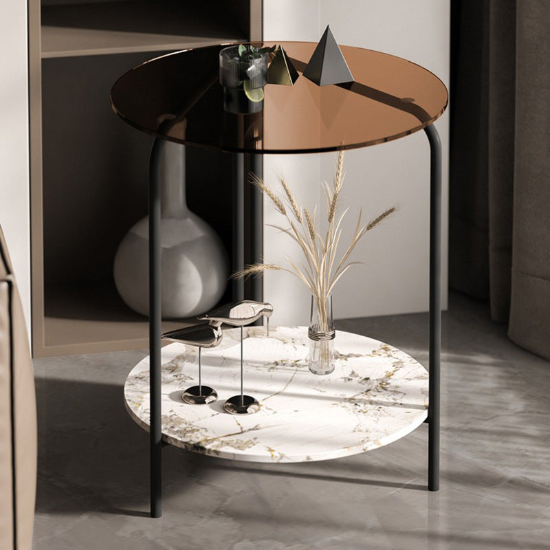 Contemporary Simplicity Round Glass Top End Table 2-Tier For Living Room