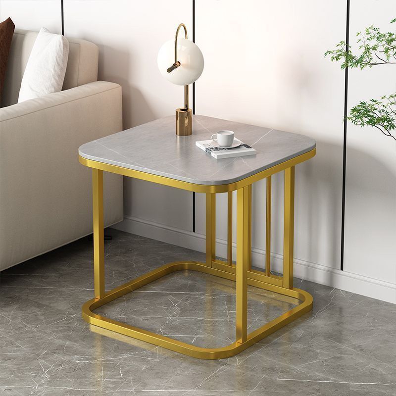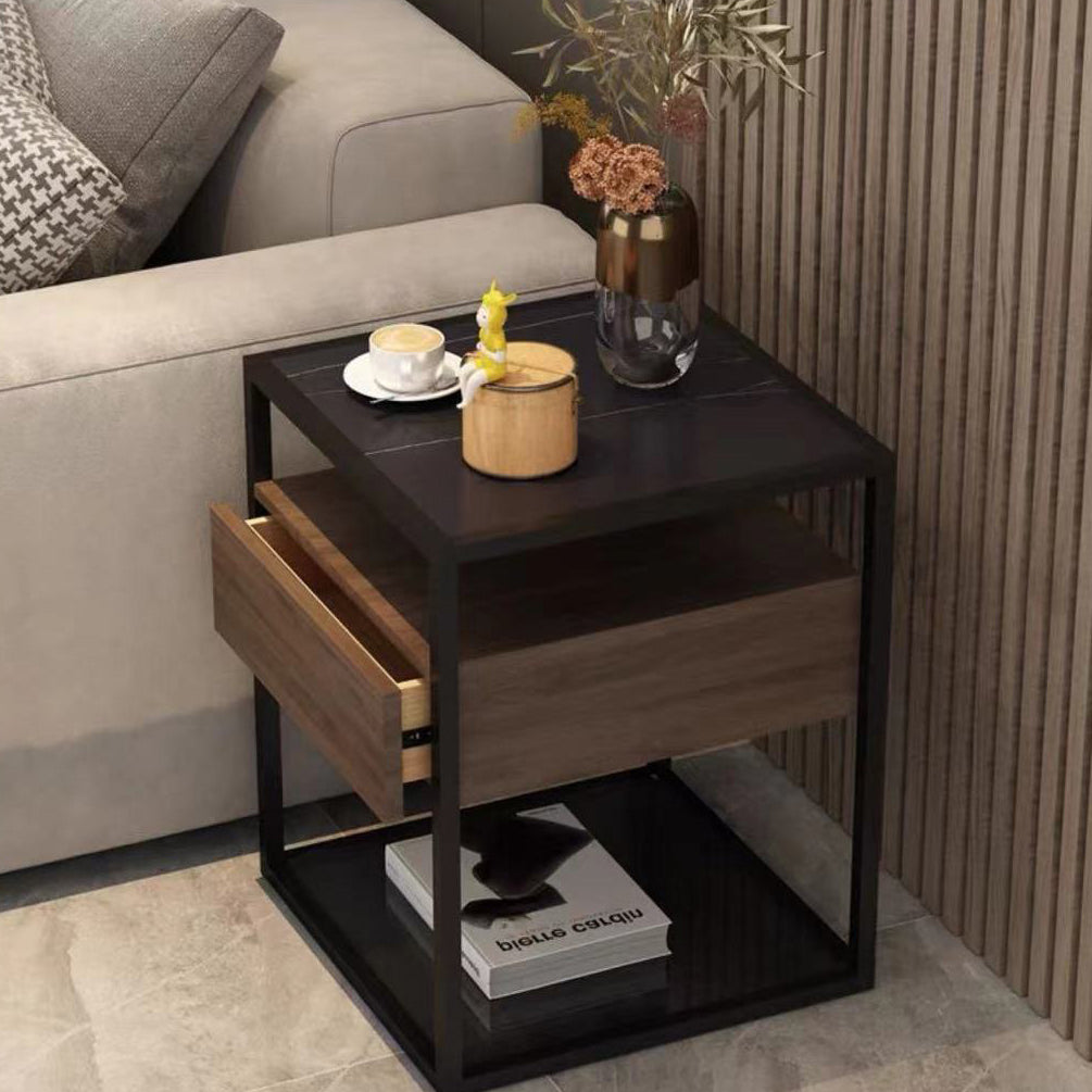 Contemporary Scandinavian Square Rock Plate Iron End Table 2-Tier For Living Room