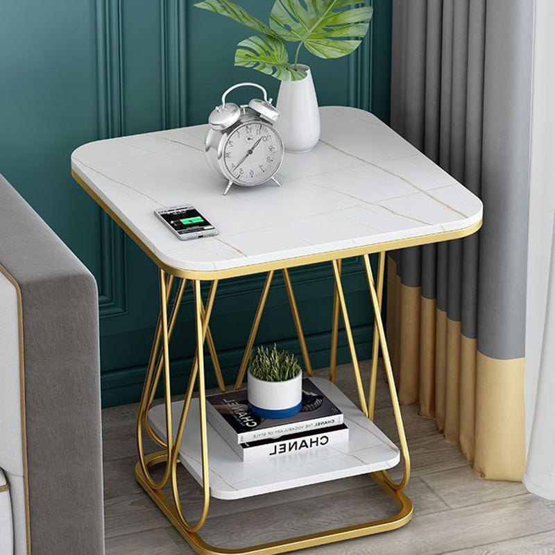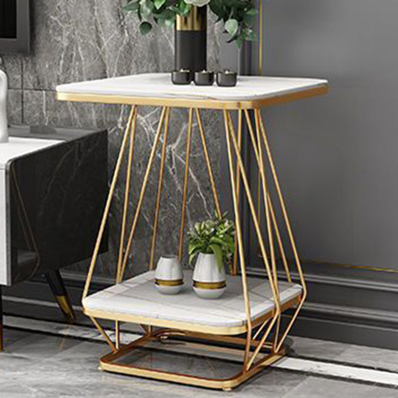 Contemporary Nordic Square Geometric Slab Iron End Table 2-Tier For Living Room