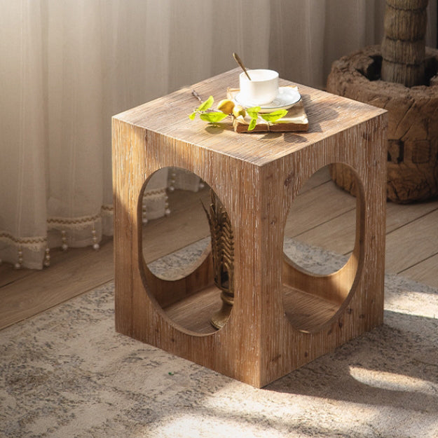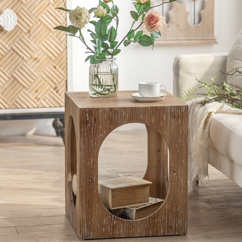 Traditional Japanese Square Wood End Table 2-Tier For Living Room