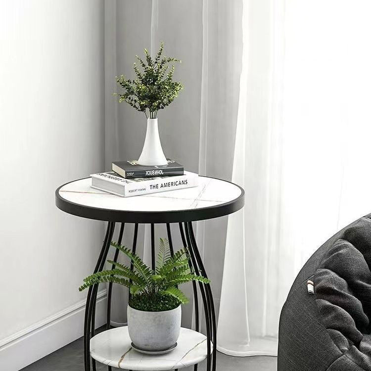 Modern Minimalist Round Iron Plastic End Table 1-Storage For Living Room