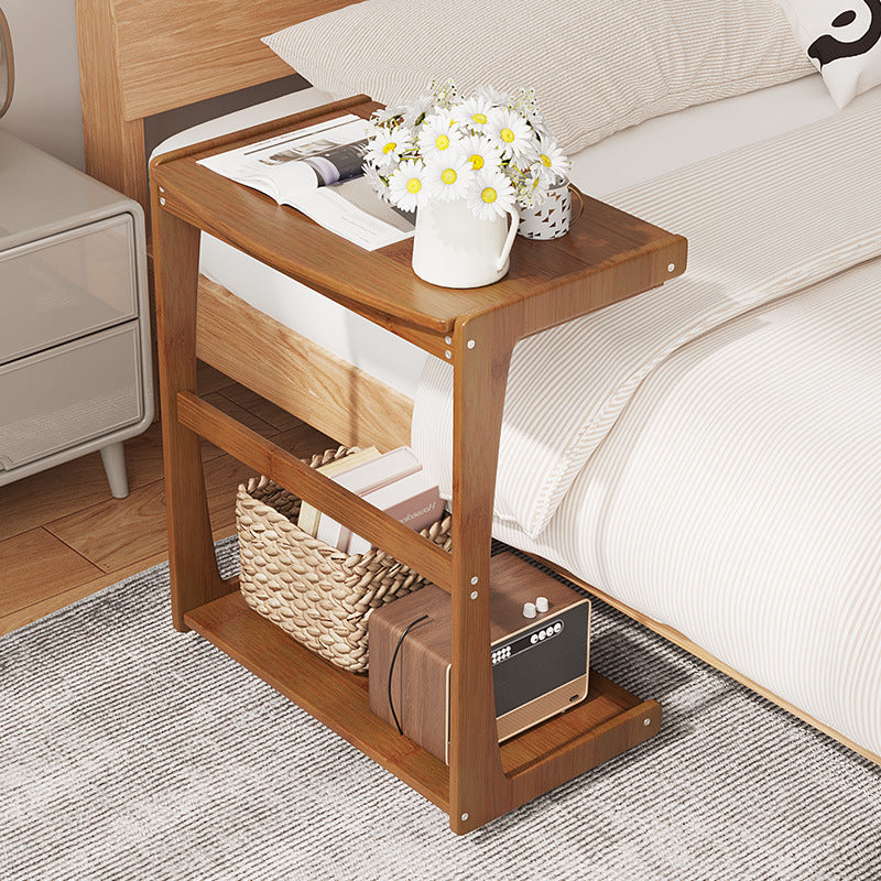 Contemporary Nordic Rectangular Wood Board Flip Cover End Table 2-Tier Movable For Living Room