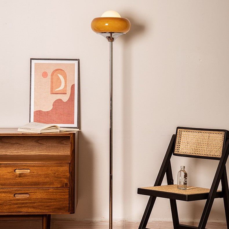 Contemporary Creative Metal & Glass Egg Tart-Shape 1-Light Standing Floor Lamp For Bedroom & Living Room