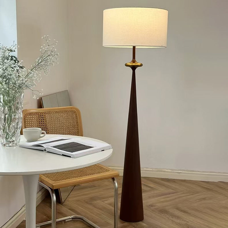 Traditional Vintage Wood Fabric Cylinder Base 1-Light Standing Floor Lamp For Living Room