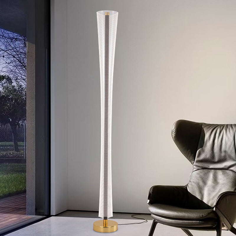 Modern Luxury Aluminum Iron And Acrylic Tower Column LED Standing Floor Lamp For Living Room And Bedroom