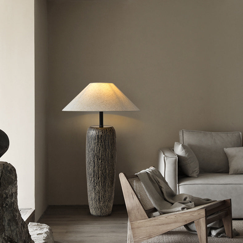 Traditional Japanese Ceramic Fabric Jar & Cone 1-Light Standing Floor Lamp For Living Room