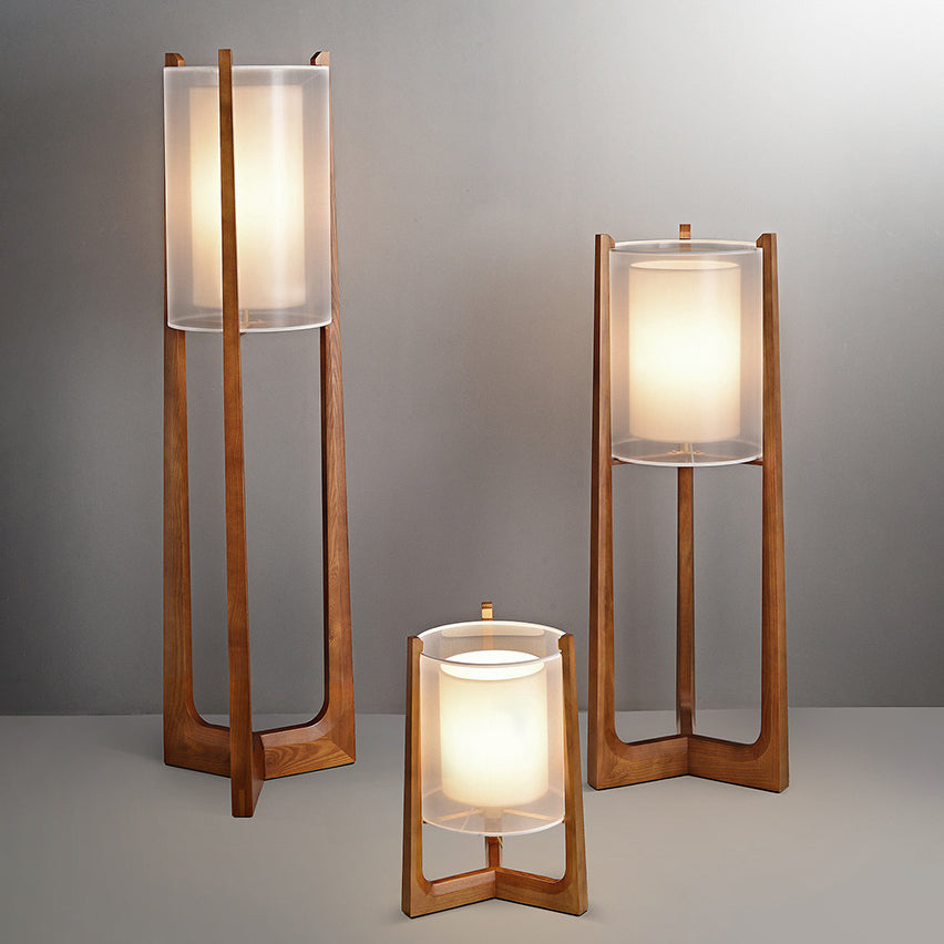 Traditional Japanese Ash Wood Fabric Cuboid LED Floor Lamp For Living Room And Bedroom