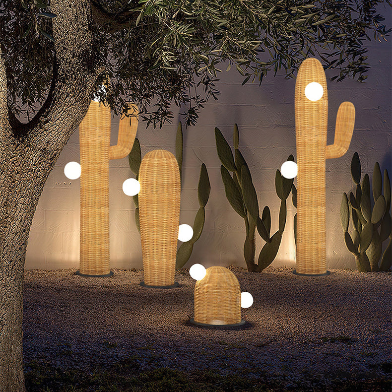 Contemporary Creative Cactus Waterproof Rubber Rattan Stainless Steel 2 - Light Standing Floor Lamp For Outdoor Patio