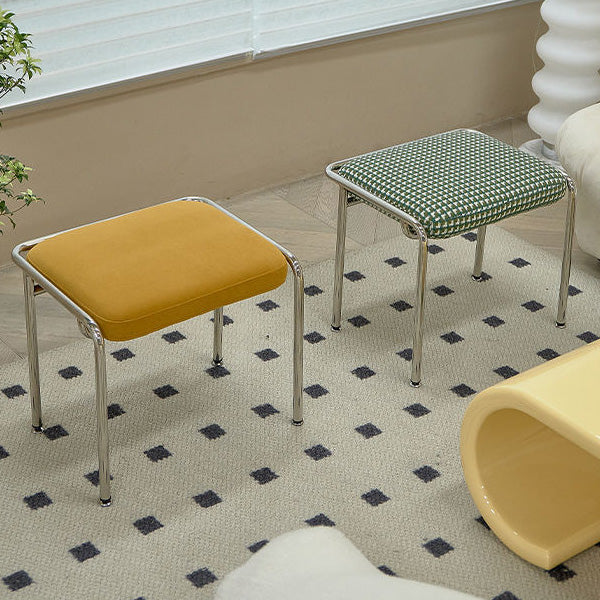 Contemporary Nordic Square Cotton Linen Carbon Steel Stainless Steel Vanity Stool Backless Armless For Bedroom