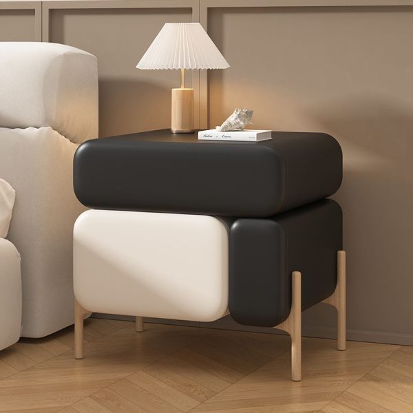 Contemporary Nordic Square Cube Solid Wood Multilayer Board Leather Nightstand 2 – Drawer For Bedroom