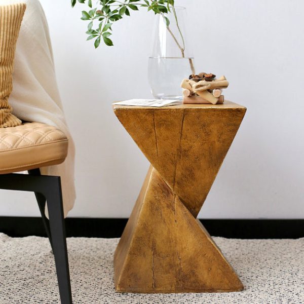 Contemporary Retro Magnesium Oxide Misaligned Triangle Wood Grain Geometric End Table 1-Tray For Bedroom