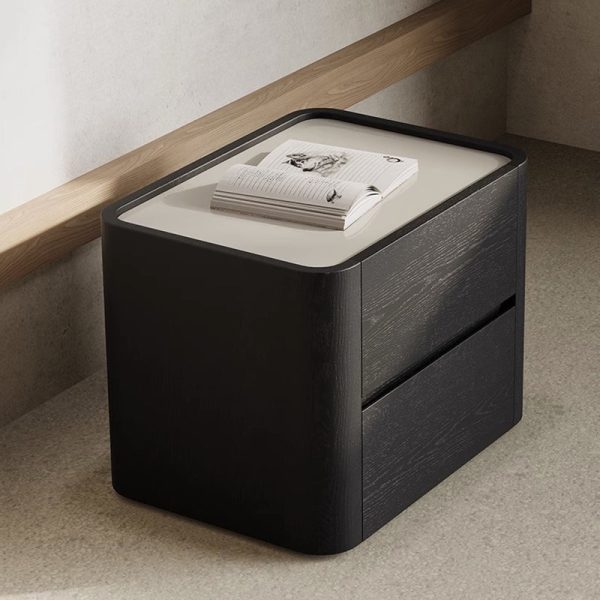 Contemporary Retro Cube Square Rubber Wood Nightstand 2 – Drawer For Bedroom