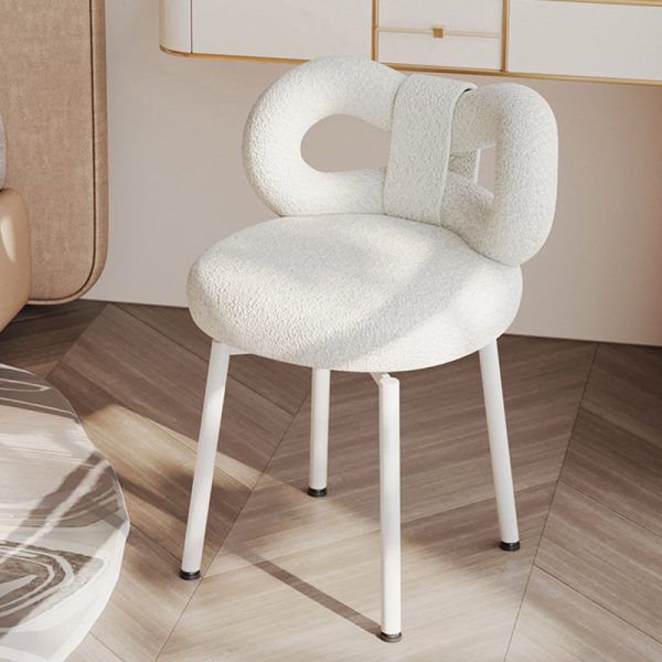 Contemporary Creative Round Upholstered Bow Lambswool Iron Vanity Stool Backrest For Bedroom