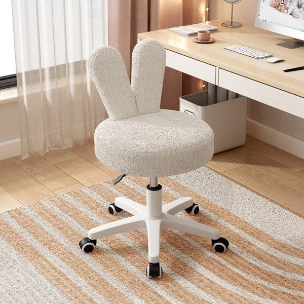 Contemporary Creative Round Upholstered Bunny Shape Backrest Lambswool Plank Iron Vanity Stool For Bedroom