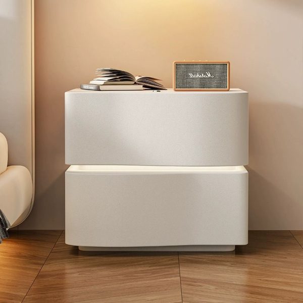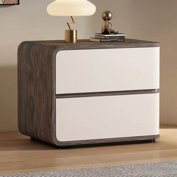 Contemporary Creative Solid Wood Faux Leather Curved Square Nightstand 2-Drawer For Bedroom