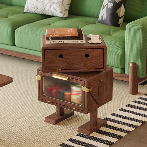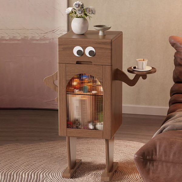 Contemporary Creative Robot Solid Wood Nightstand 2 Storage Cabinets For Bedroom