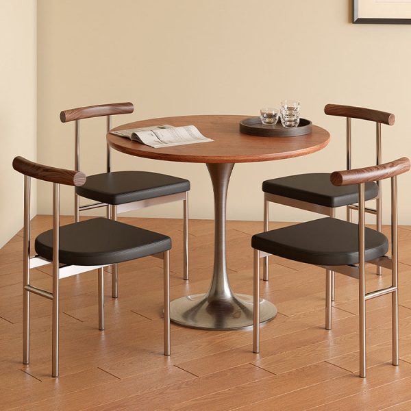 Contemporary Scandinavian Leather Metal Sponge Round Arc Dining Chair Backrest For Dining Room