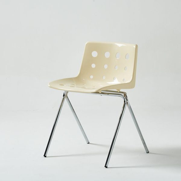 Contemporary Scandinavian Plastic Square Hollowed Dining Chair Backrest Stackable For Dining Room