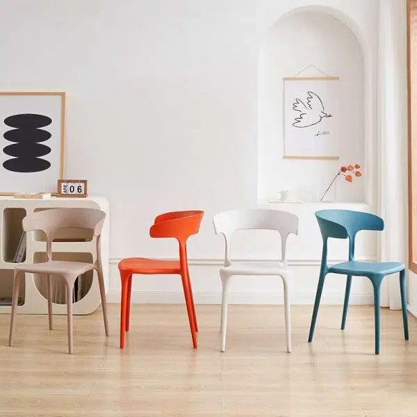 Contemporary Scandinavian Macaron Square Plastic Stackable Dining Chair Backrest For Dining Room