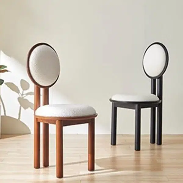 Contemporary Scandinavian Round Back Solid Wood Lambswool Leather Dining Chair Backrest For Dining Room