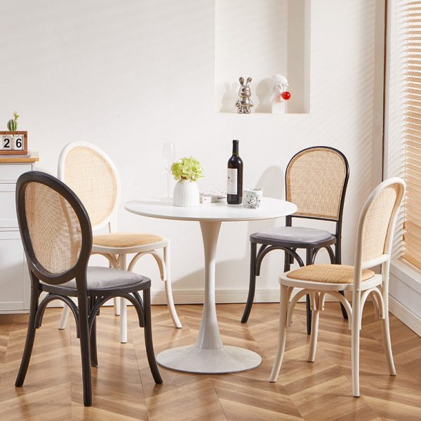 Contemporary Scandinavian Rattan Solid Wood Oval Square Dining Chair With Backrest For Dining Room