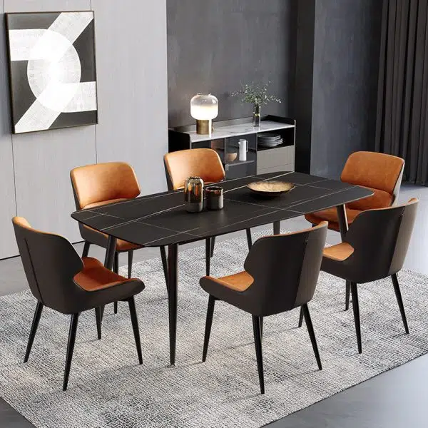 Contemporary Scandinavian Rectangular Leather Steel Dining Chair Backrest For Dining Room