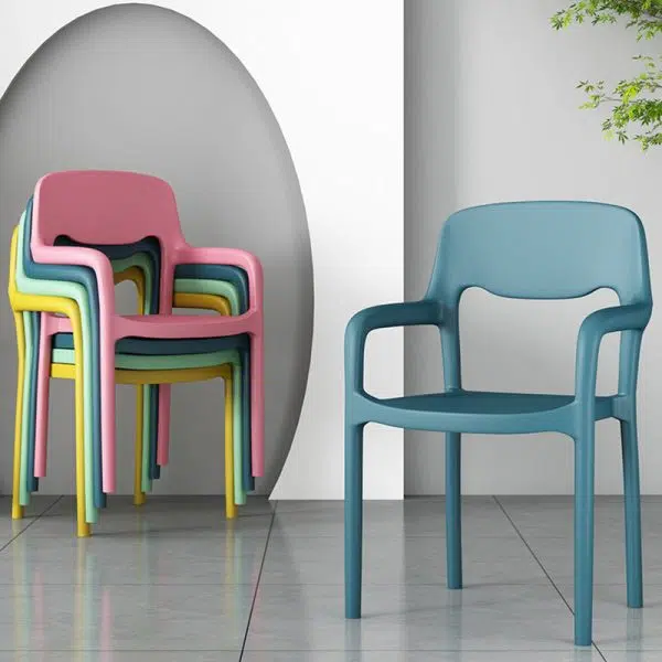 Contemporary Scandinavian PP Square Exclamation Mark Dining Chair Backrest Armrest For Dining Room