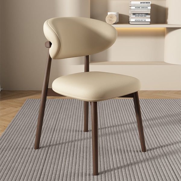 Contemporary Luxury Leather Wood Legs Stainless Steel Decor Dining Chair Backrest For Dining Room