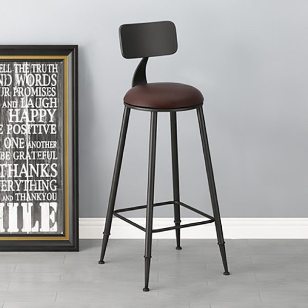 Contemporary Industrial Leather Iron Bar Stool Backrest Armless For Dining Room