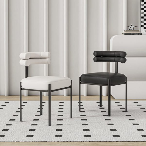 Contemporary Nordic Square Leather Carbon Steel Stackable Dining Chair Backrest For Dining Room