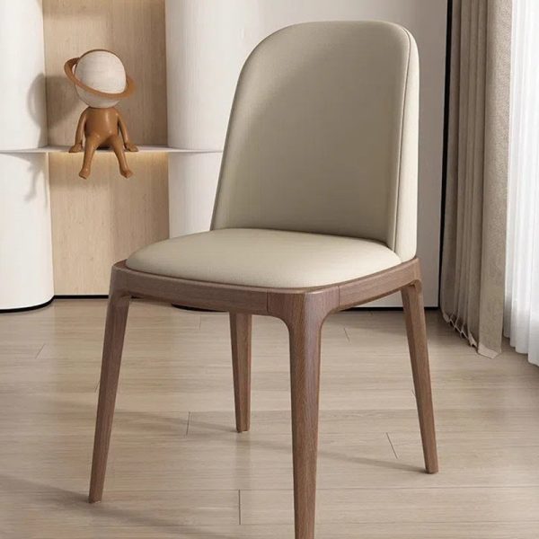 Contemporary Nordic Square Leather Solid Wood Dining Chair Curved Backrest For Dining Room