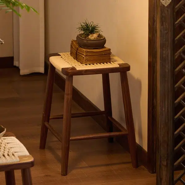 Contemporary Retro Kraft Paper Rope Cherry Wood Dining Chair Backless Armless For Dining Room