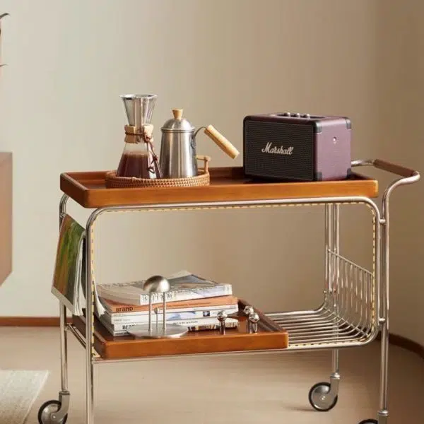 Contemporary Retro Rectangular Wooden Stainless Steel Dining Cart 2-Tier For Dining Room