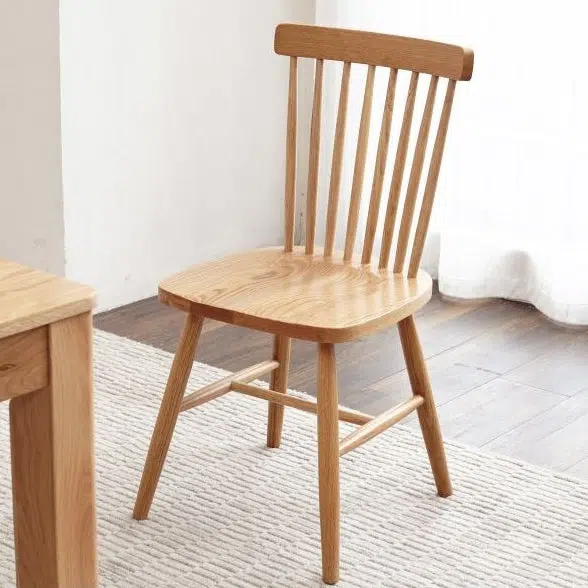 Contemporary Retro Solid Wood Splayed Legs Dining Chair Curved Slat Back For Dining Room