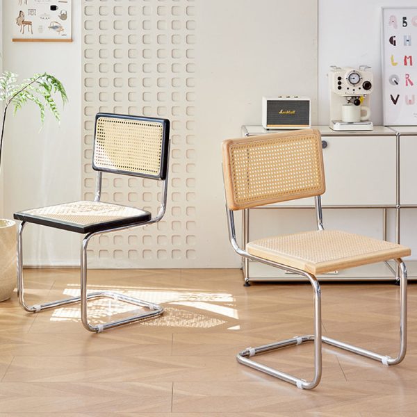 Contemporary Scandinavian Curved Back Solid Rattan Iron Dining Chair Backrest For Dining Room