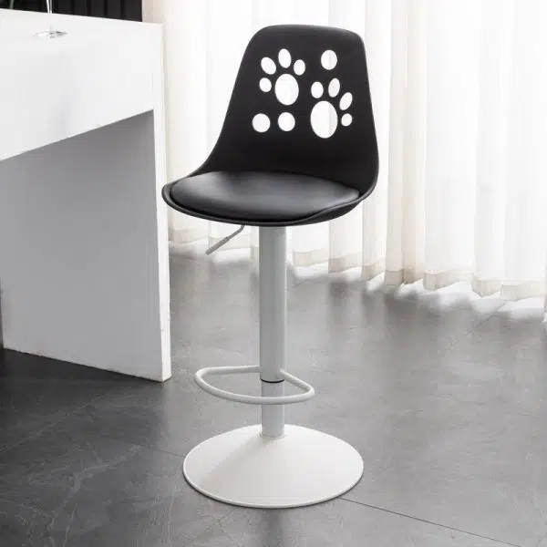 Contemporary Scandinavian Curved PU Leather Plastic Height Adjustable Swivel Bar Stool Cat Paw Back Footrest For Dining Room