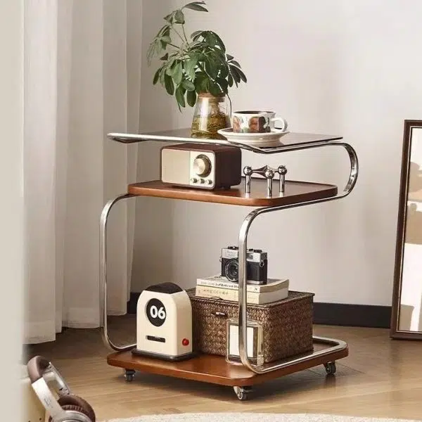 Contemporary Scandinavian Geometry Square Glass Solid Wood Stainless Steel Side Table 3 – Tier For Dining Room