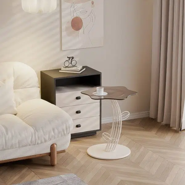 Contemporary Creative Curved Solid Wood End Table 5-Drawer For Living Room